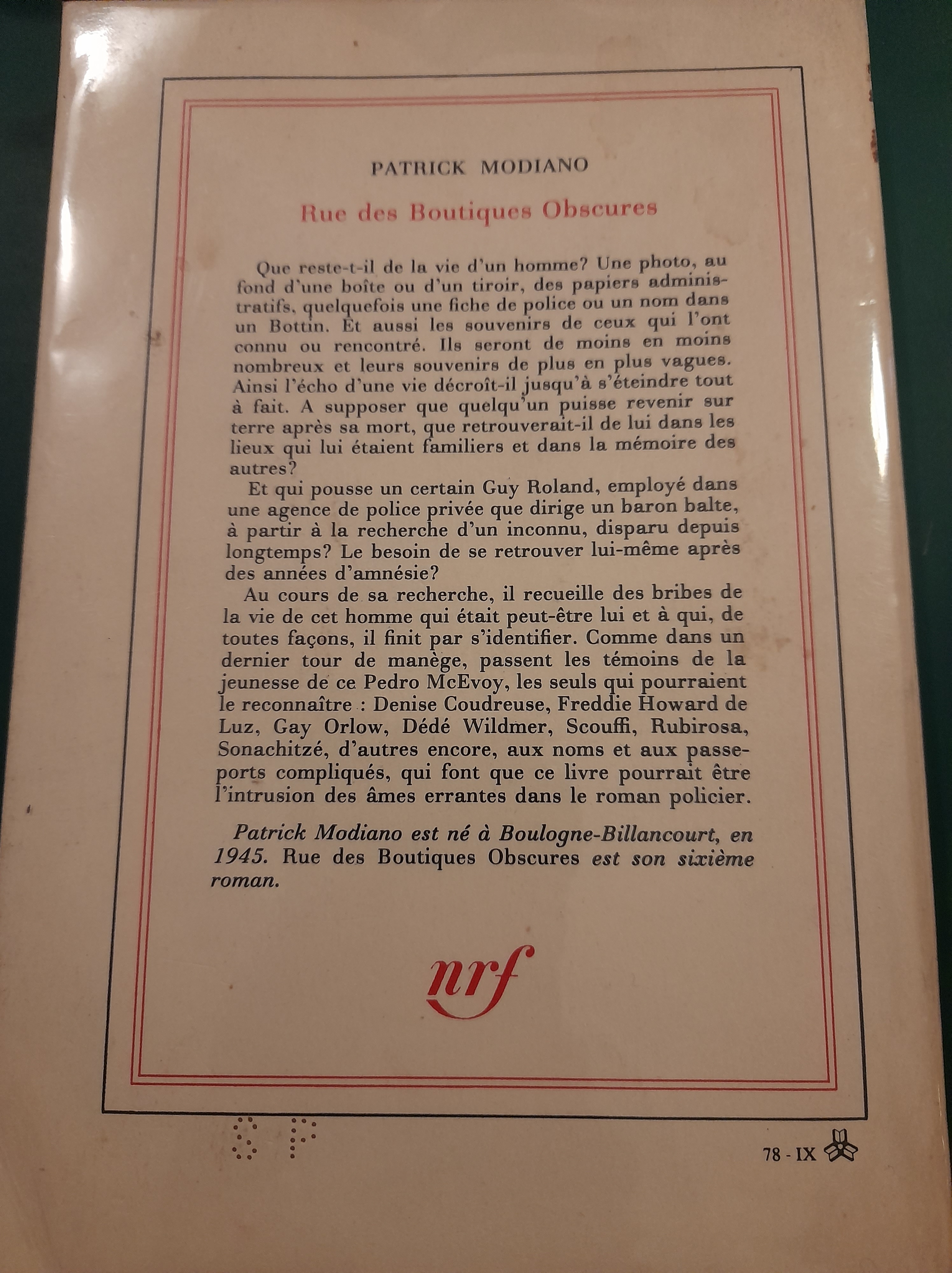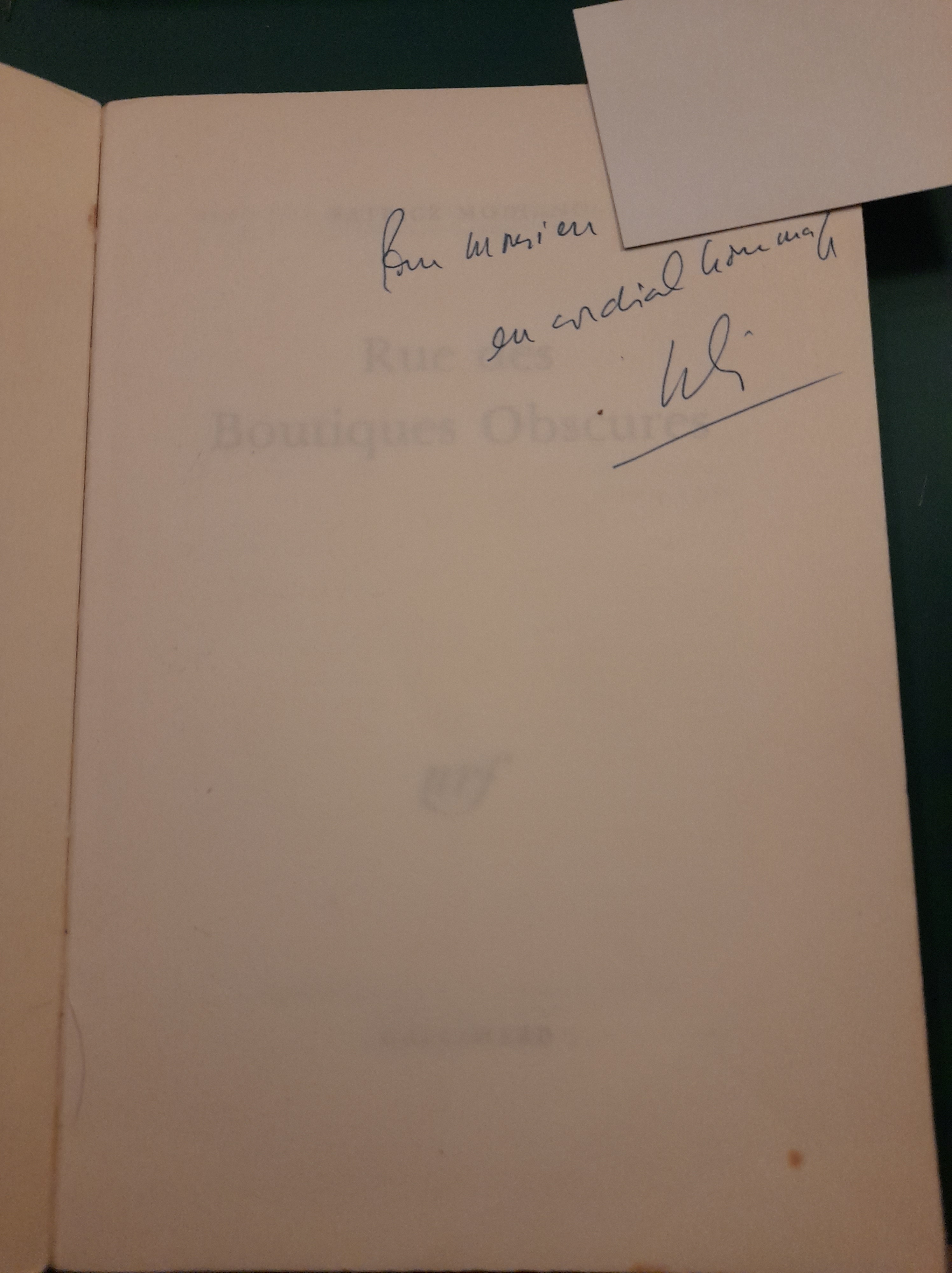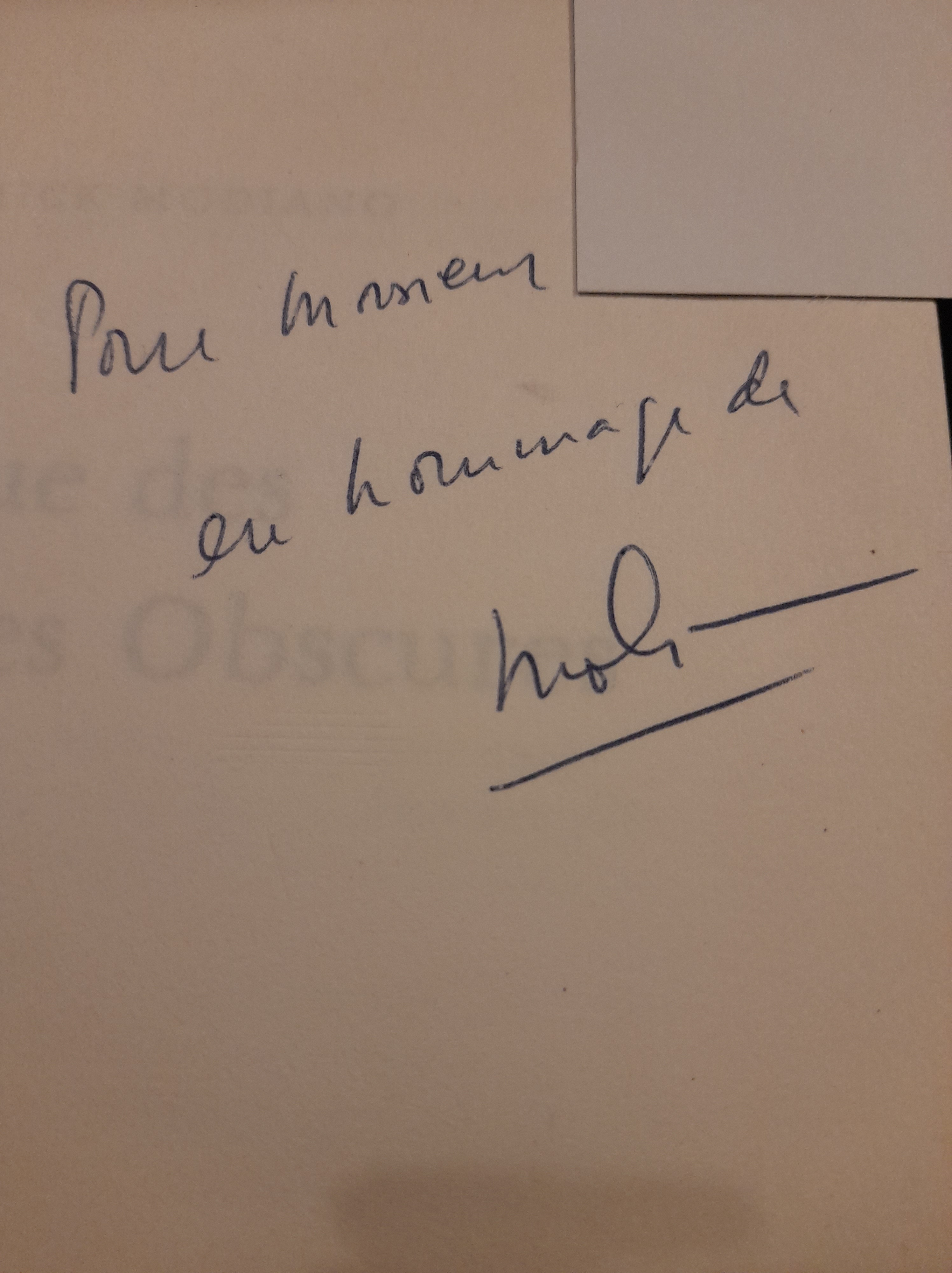 Nous vous proposons un service de presse du 6e roman du prix Nobel Patrick Modiano, dédicacé, mais malheureusement ayant subi de petits incidents sur la couverture, des taches brunes d’origine inconnue…